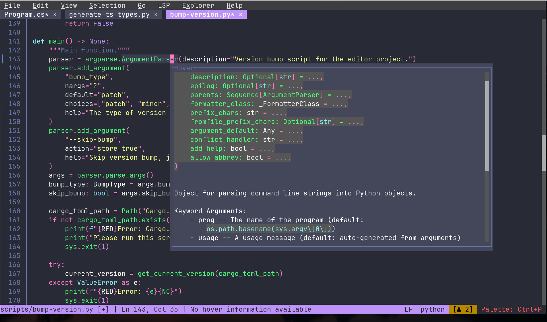 LSP support brings IDE-like features to the terminal. Get go to definition, real-time diagnostics, hover documentation, and more.